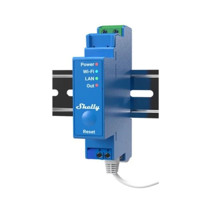 Shelly Pro 1, Relé de estado sólido, Azul, 802.11b, 802.11g, Wi-Fi 4 (802.11n), 2,4 GHz, 30 m, 13,35 dBmW