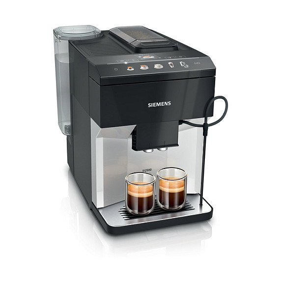 Siemens TP511D01 - Máquina de Café Espresso Automática con Molinillo Integrado, 1.9 L, 15 Bar, Espumador de Leche, Color Plata Metálico