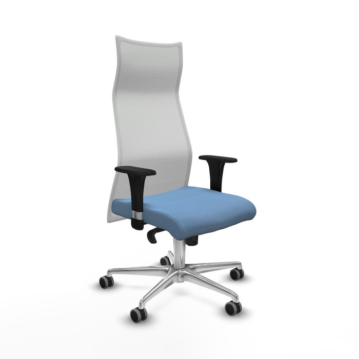 El mecanismo permite la regulación de la inclinación tanto del respaldo como del asiento, con fijación en 5 puntos, además de ajuste en la altura del asiento entre 46 y 55 cm, adaptándose a diferentes necesidades. Los brazos 1D son ajustables en altura, desde 66 hasta 73 cm, para mayor comodidad y soporte durante el uso.