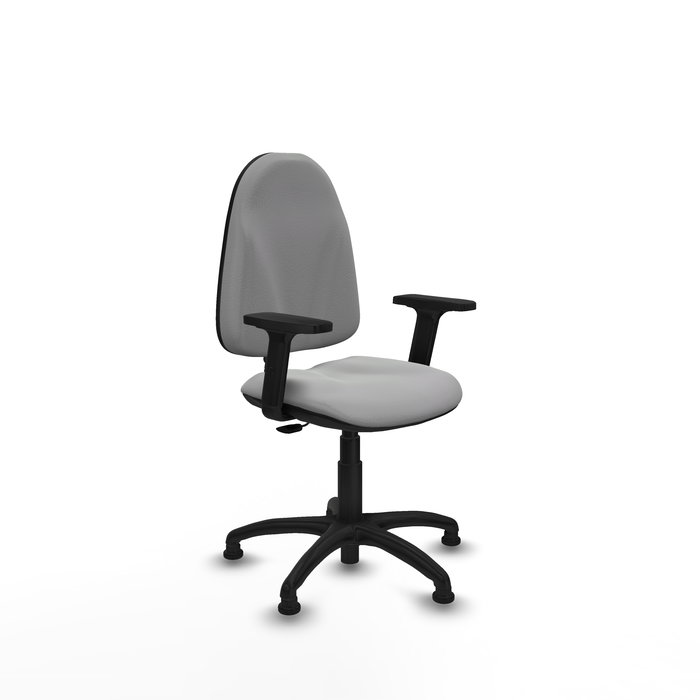 Silla de oficina Algarra con mecanismo Contacto permanente básico tapizada con Similpiel color Gris claro. Equipada con Base poliamida negra, Brazos 2Dy Topes