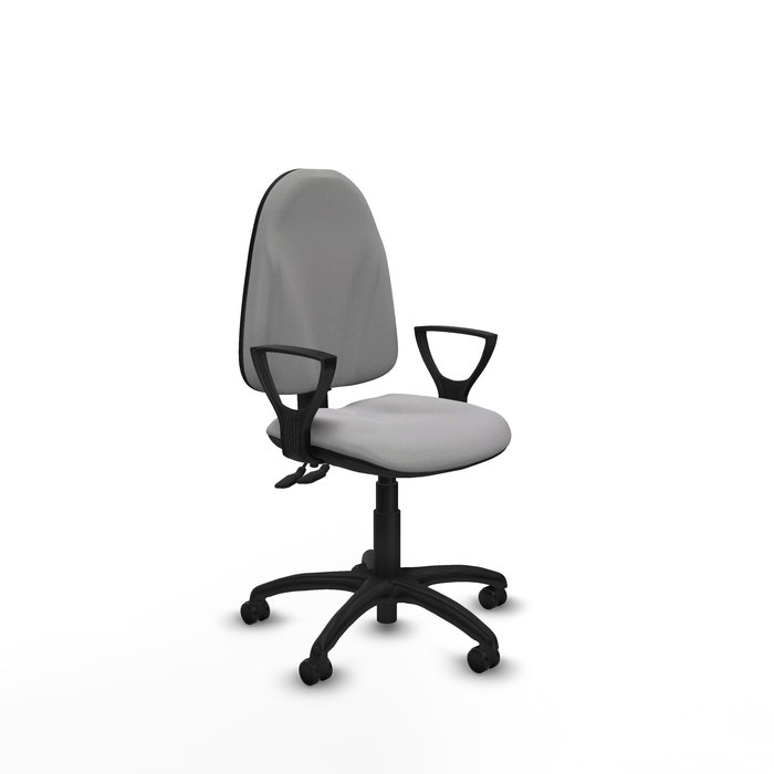 Silla de oficina Algarra con mecanismo Contacto permanente de doble maneta tapizada con Tela color Gris claro. Equipada con Base poliamida negra, Brazos fijos y Ruedas autofrenantes