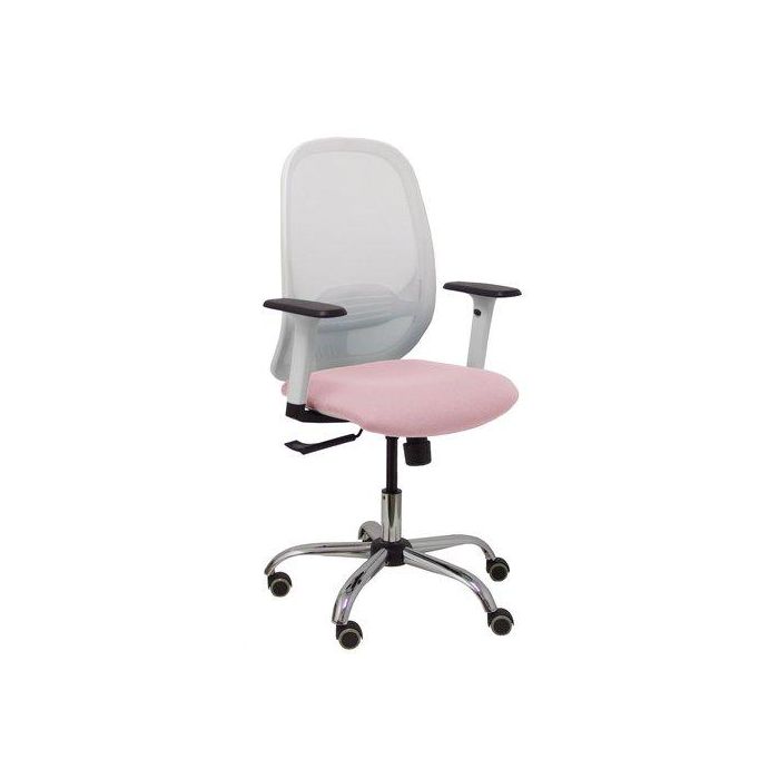 Silla Piqueras Y Crespo Cilanco Blanca Uso Intensivo Brazos Regulables Mecanismo Sincro Con Regulador De Tension Refuerzo Lumbar Regulable Base Cromada Ruedas Parquet Respaldo De Malla Blanca Y Asiento Tapizado Bali Rosa