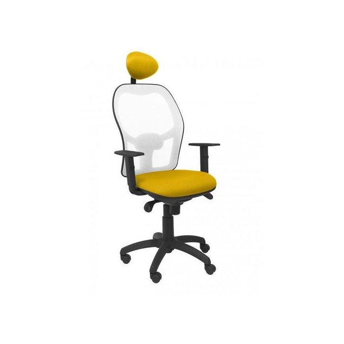 Silla Piqueras Y Crespo Jorquera Brazos Regulables Cabecero Fijo Mecanismo Sincro Con Regulador De Tension Respaldo De Malla Blanca Y Asiento Tapizado Bali Amarillo
