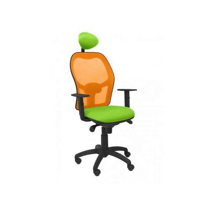 Silla Piqueras Y Crespo Jorquera Brazos Regulables Cabecero Fijo Mecanismo Sincro Con Regulador De Tension Respaldo De Malla Naranja Y Asiento Tapizado Bali Verde