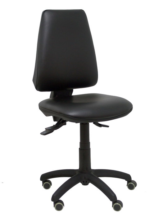 Silla de oficina Elche con mecanismo Asincro tapizada con Similpiel color Negro. Equipada con Base poliamida negra, Sin brazos y Ruedas de parqué