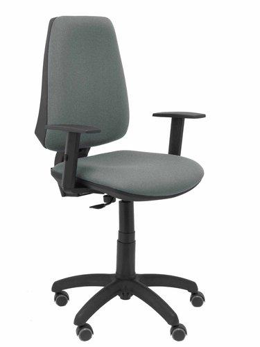 Silla de oficina Elche con mecanismo Contacto permanente básico tapizada con Tela color Gris. Equipada con Base poliamida negra, Brazos 1D y Ruedas de parqué