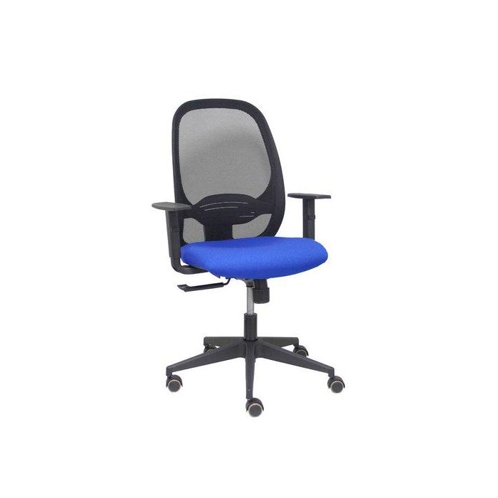Silla Piqueras Y Crespo Cilanco Negra Uso Intensivo Brazos Regulables Mecanismo Sincro Con Regulador De Tension Refuerzo Lumbar Regulable Ruedas Parquet Respaldo De Malla Negra Y Asiento Tapizado Bali Azul