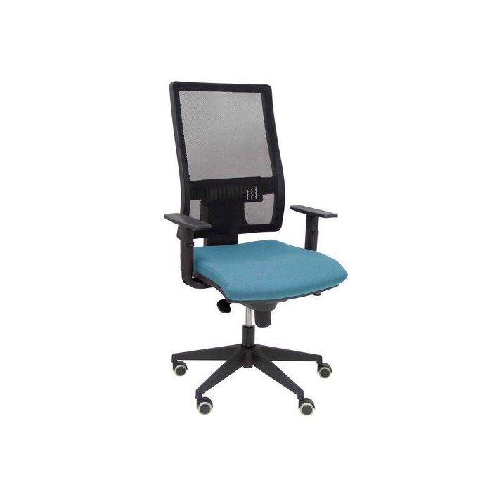 Silla Piqueras Y Crespo Horna Brazos Regulables Mecanismo Sincro Altura Y Apoyo Lumbar Regulable Rueda Parquet Respaldo Malla Negra Transpirable Y Asiento Tapizado Bali Azul Cielo