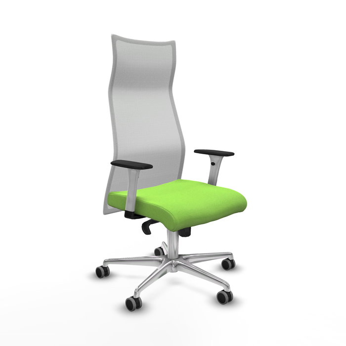 Su mecanismo permite la regulación de la inclinación del respaldo y asiento con fijación en 5 puntos, además de ajuste en la altura del asiento, que varía entre 46 y 55 cm, facilitando una postura personalizada. Los brazos ByN, ajustables entre 66 y 73 cm de altura, complementan el diseño para ofrecer soporte adicional durante reuniones o trabajo ejecutivo.