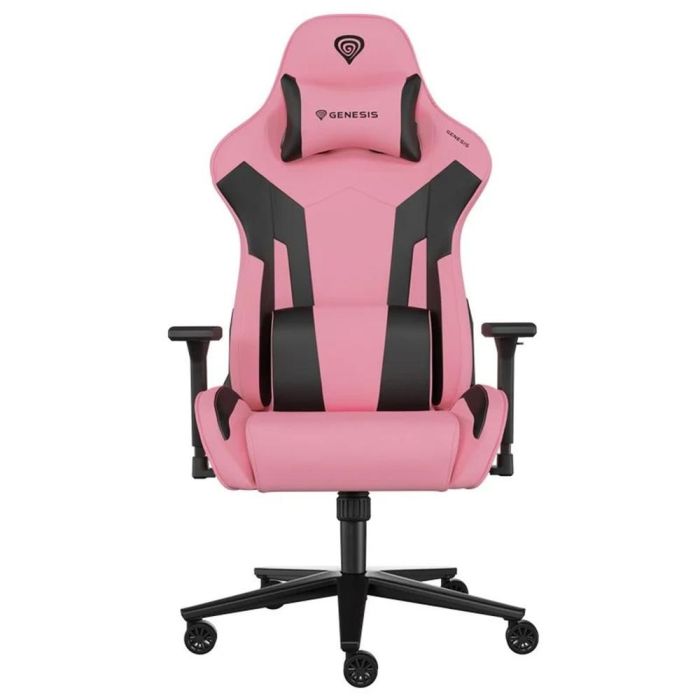 GENESIS Silla Gaming PC Nitro 720, Negra y Rosa, Ajustable, Respaldo y Reposabrazos 3D, Cojines Lumbar y Cervical, Tejido Transpirable, Soporta 150kg
