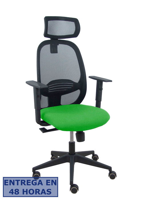 PIQUERAS Y CRESPO MODELO CILANCO NEGRA - SILLA DE OFICINA ERGONOMICA CON MECANISMO SINCRO, BRAZOS REGULABLES Y AJUSTABLE EN ALTURA - RESPALDO NEGRO, TAPIZADO EN MALLA TRANSPIRABLE EN COLOR NEGRO CON CABECERO REGULABLE Y ASIENTO TAPIZADO EN TEJIDO BALI COLOR VERDE.