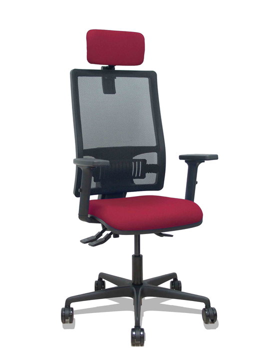 Silla de oficina Bormate con mecanismo Asincro tapizada con Tela color Granate y malla color Negro. Equipada con lumbar 1D, Brazos 2D, Cabecero 2D y Ruedas 65mm nailon