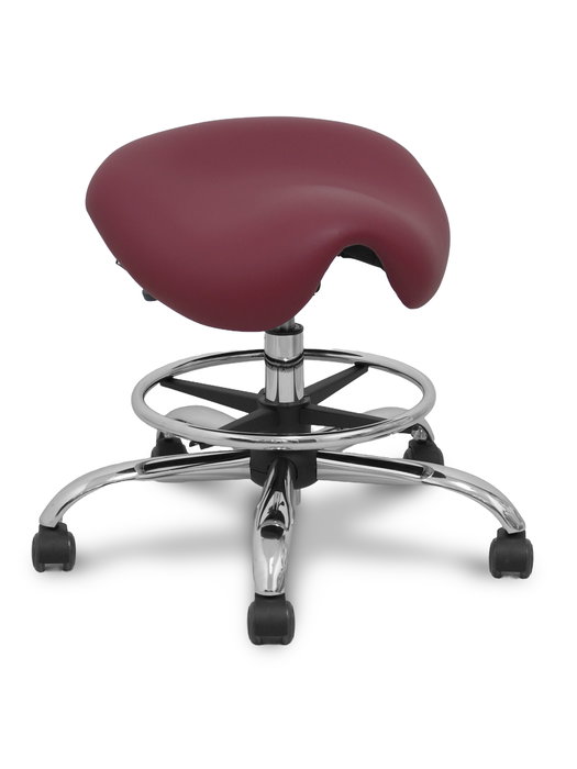 Taburete Zarza con mecanismo Basculante tapizada con Similpiel color No aplica y malla color Granate. Equipado con Base cromada, Sin brazos y Ruedas de parqué