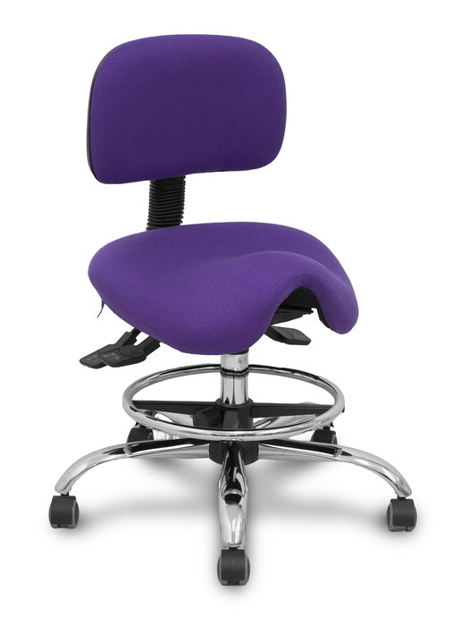 Taburete Zarza con mecanismo Asincro tapizada con Tela color Lila. Equipado con Base cromada, Sin brazos y Ruedas de parqué