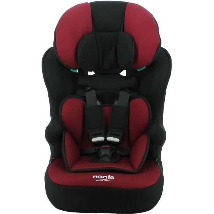 Silla de coche con cinturón NANIA RACE I 76-140 cm R129 de 3 a 10 años Reposacabezas regulable Base reclinable Rojo Fabricación francesa