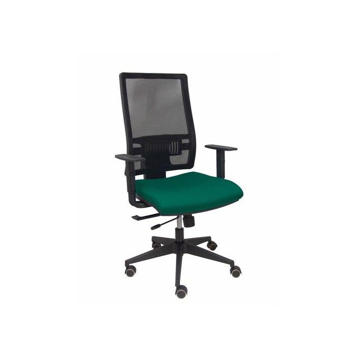 Silla Piqueras Y Crespo Horna Brazos Regulables Mecanismo Traslack Altura Y Apoyo Lumbar Regulable Rueda Parquet Respaldo Malla Negra Transpirable Y Asiento Tapizado Bali Verde Botella