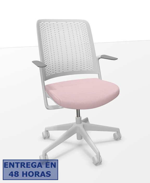 NOWYSTYL MODELO WITHME - SILLA DINAMICA DE TRABAJO. MECANISMO DE AUTO-TENSION CON AJUSTE AUTOMATICO DE PESO. RESPALDO DE POLIAMIDA PERFORADO REFORZADA CON BOLAS DE VIDRIO, EN COLOR GRIS CLARO. REPOSABRAZOS FIJOS DE POLIAMIDA EN COLOR GRIS. ASIENTO TAPIZADO EN TEJIDO ERA EN COLOR ROSA