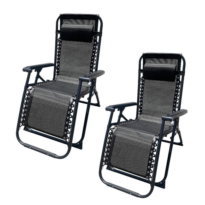 Marbueno Pack de 2 Tumbona Plegable Acero Cojin Jardin y Piscina 90X66X108 Gravedad Cero Negra MARBUENO SUMMER 10006X2