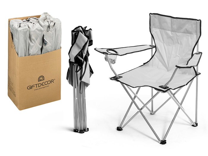 Giftdecor Silla Plegable Pescador, Gris, Estructura de Metal y Asiento de Poliéster, Dimensiones 79x47x79 cm (Abierta) (Set de 8)