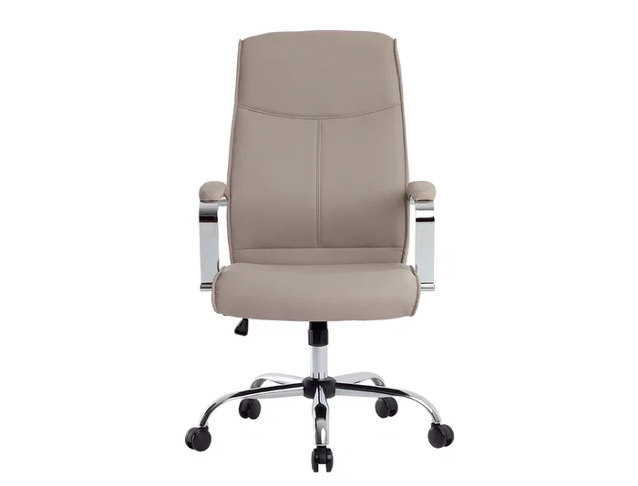 Silla de dirección con diseño fino y sofisticado tapizada de simil piel encolor gris, perfecta para añadir un toque de elegancia a cualquier espaci o. Ofrece una combinación de comodidad y estilo. Tiene un diseño cuidado al detalle, con unos brazos acolchados con base metálica cromada brindan unsoporte adicional y un aspecto moderno y atractivo. La silla cuenta con u n mecanismo de mariposa que permite ajustar fácilmente la altura y la inclinación del asiento, adaptándose a tus preferencias y necesidades de confort. Gracias al gaslift de 80 mm cromado, podrás ajustar la altura de la silla con suavidad y precisión. La base cromada de 350 mm proporciona estabilidad y resistencia, asegurando que la silla se mantenga firme y segura durante su uso. Equipada con ruedas premium, ofrece una movilidad suave, permitiéndote desplazarte sin esfuerzo por tu espacio de trabajo de forma silenciosa. Las ruedas están especialmente diseñadas con un recubrimiento denylon que evita arañazos y protege el