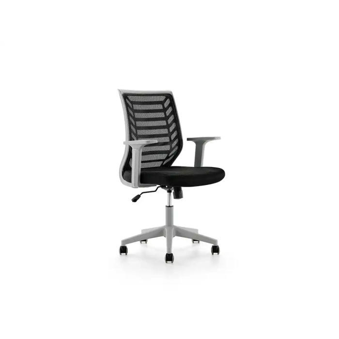 Rocada Silla de Oficina con Brazos Regulables, Respaldo de Malla y Asiento de Tela Ignífuga, Color Negro