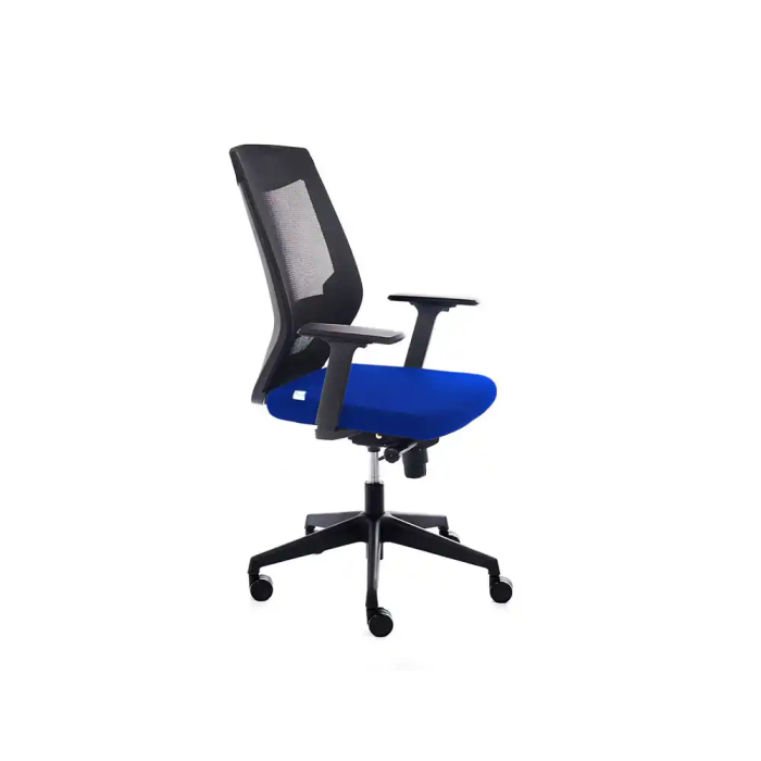 Rocada Silla de Oficina Tapizada en Tela Ignifuga Azul con Respaldo en Polímero Negro