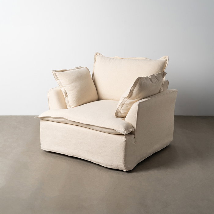 Sillón Beige Madera / Tejido Salón 115 X 109 X 97 cm