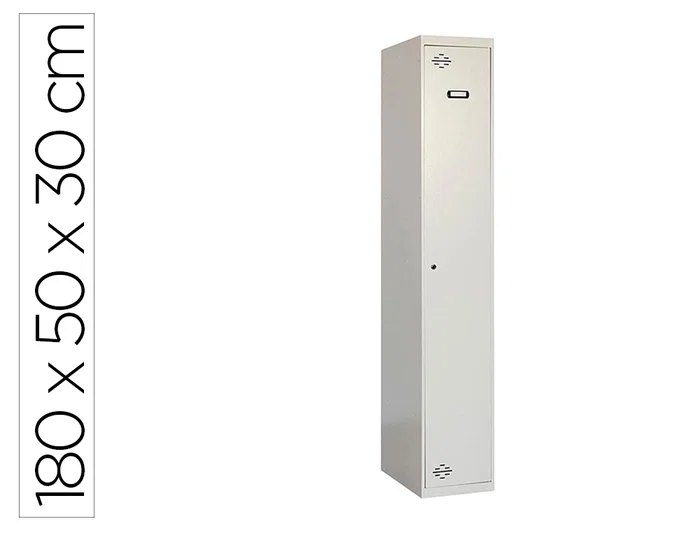 Taquilla metálica con 1 puerta. Incluye cerradura, llave, etiquetero y respiradero. Hecha en España, calidad europea. Color gris/gris. Medidas: 1800x300x500 mm.
