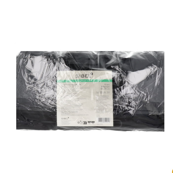 Sinelco P005471 Toallas de Microfibra Negro Sibel Pack 12 Unidades 45x85 cm - Profesional para Peluquería y Barbería