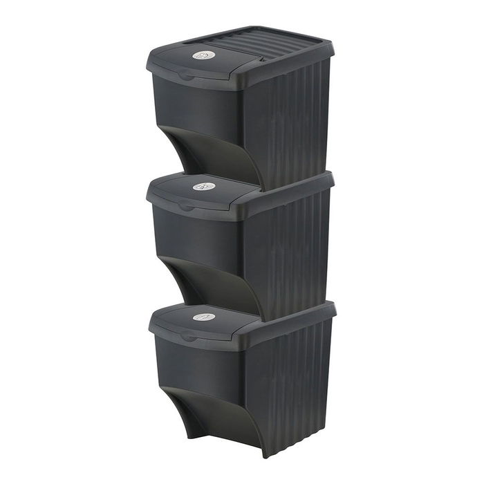 Sortibox Sistema de 3 Cubos Apilables para Reciclaje 39,2 x 29,3 x 45,6 cm, 3 x 22 Litros, Gris Piedra