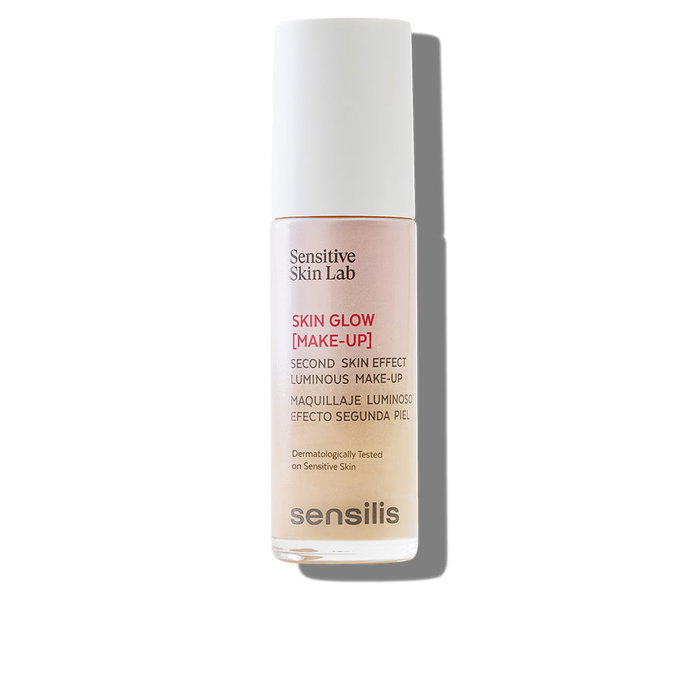 Base de maquillaje SKIN GLOW MAKEUP de Sensilis en tono 05-Pêche Doré. Es una base de maquillaje luminosa y dermatológica con acción antioxidante que aporta hidratación e iluminación inmediata.