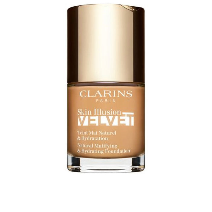Descubre la base de maquillaje Skin Illusion Velvet de Clarins. Esta innovadora base sérum ofrece un acabado mate aterciopelado ultranatural, perfecto para una piel equilibrada y libre de brillos. Su cobertura ligera unifica la tez logrando un efecto "piel desnuda", mientras su textura ligera y suave proporciona una comodidad duradera y una sensación similar a la suavidad del melocotón.