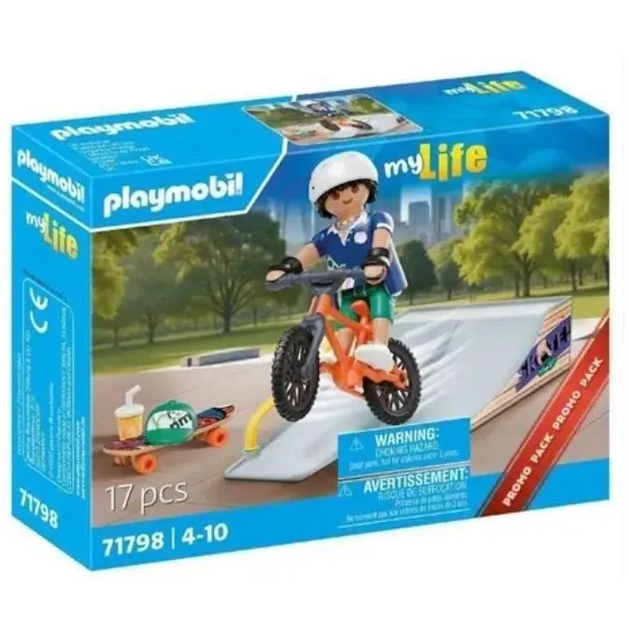 - Contenido caja: Contenido: Figuras: 1 niño; Accesorios: 1 rampa de skate, 1 bicicleta BMX, 1 monopatín, 1 casco, 1 gorra, 1 reproductor MP3, 1 vaso con pajita
