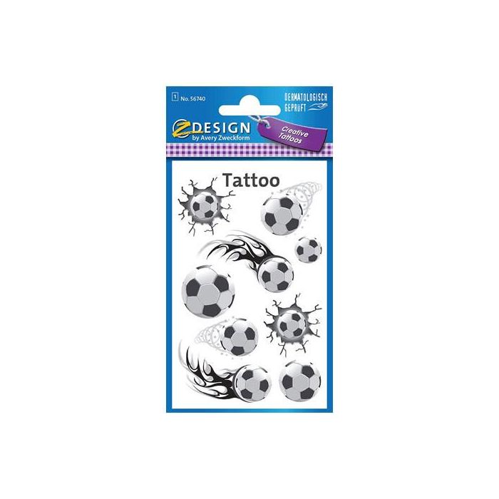 Avery 56740 Sobre con 1 Hoja y 9 Pegatinas Tattoo Balones, Blanco/Negro, 76x120mm