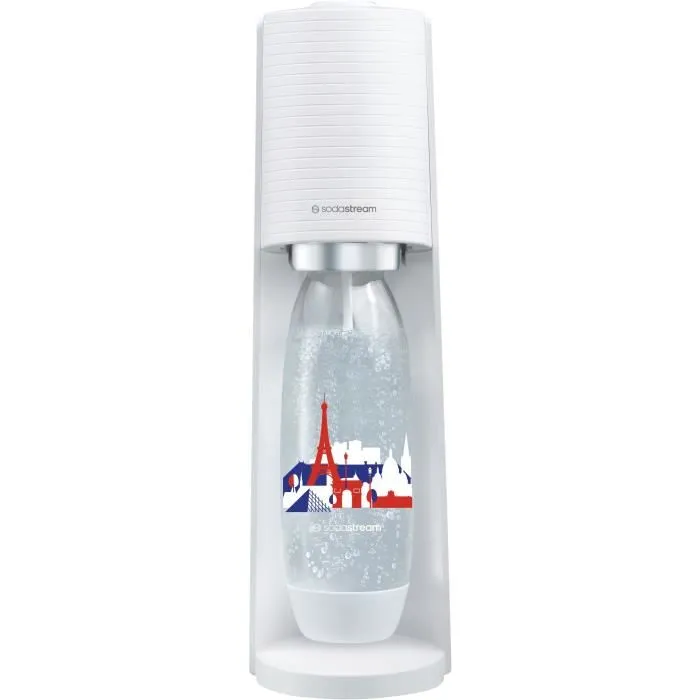 SODASTREAM Terra - Máquina de agua con gas blanca + 1 botella Fuse edición francesa de 1L + 1 recambio de gas Clip-on de 60L
