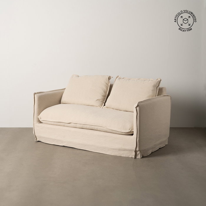 Sofá 2 Plazas Crema Tejido-Madera 160 X 95 X 85 cm Tejido: 40%Lino - 60% Algodón. Desenfundable. Estructura: Madera de Pino. Relleno Del Asiento: Foam y Pluma. Relleno Del Respaldo:Foam y Pluma. Cierre de Los Cojines con Cremallera. Color de Las Patas Negro. Peso Máximo Soportado: 300 kg. Densidad:39 kg/M3. Lavado En Seco. No Usar Plancha. Altura Del Asiento:47 cm. Altura Del Reposabrazos:65 cm Cumple con La Normativa Une-En 12520-2016.