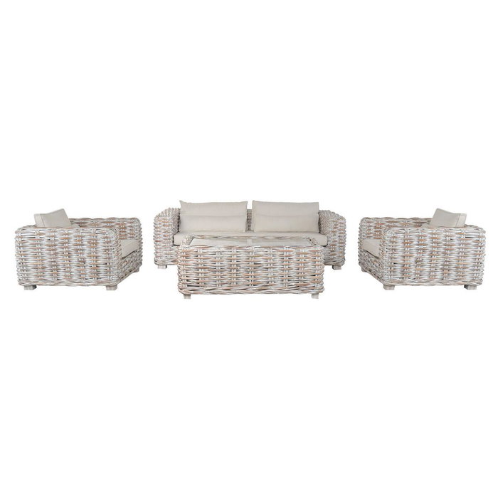 DKD Home Decor Indo 2c25 Sofá Balinés Bicolor Ratán 103 x 64 x 220 cm Set de 4 con Cojines