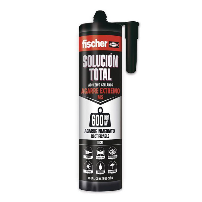 Ms extreme tack 290ml fischer. adhesivo monocomponente de curado rapido y elasticidad permanente basado en smp. adherencia inicial muy alta, adhesivo alta resistencia, curado por la humedad, reticulacion neutra y bajo olor. sin disolventes, isocianatos, ni siliconas. curado rapido y completo. elasticidad permanente de -40°c a +90°c. resistencia mecanica muy alta. inodoro. compatible con pinturas. no es corrosivo en las superficies. resistente a los golpes y vibraciones (amortiguador). resistente a la expansion termica y la tension del material.