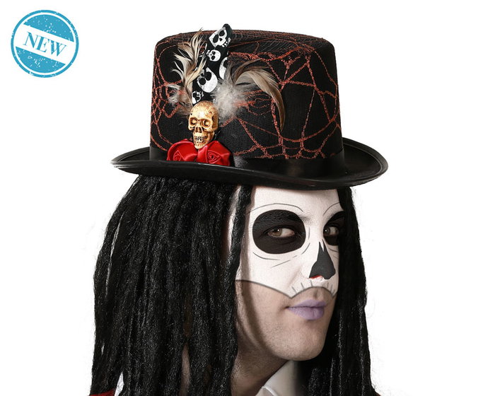 Sombrero Claquer Negro Con Redes Y Calavera