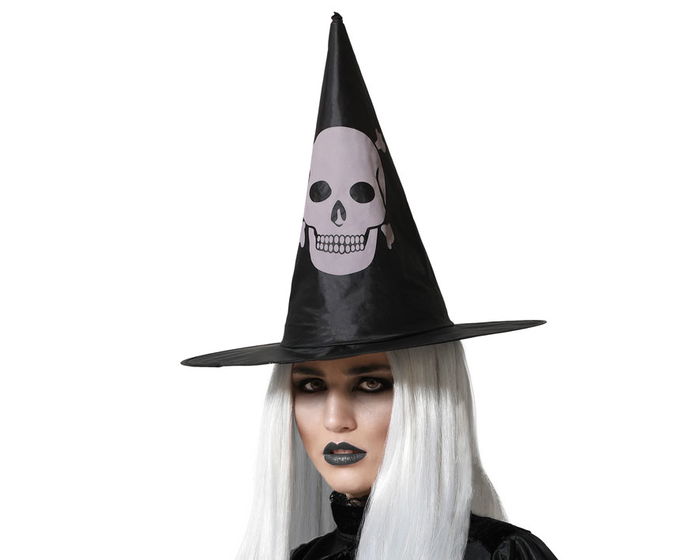 Este sombrero de bruja negro con calavera aporta un toque siniestro y elegante a cualquier disfraz. ideal para looks de bruja gótica, hechicera oscura o personaje de terror. perfecto para halloween, fiestas nocturnas y ambientaciones de misterio.