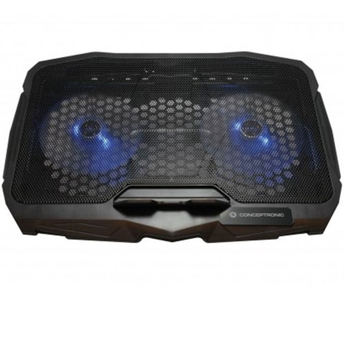 Conceptronic Thana07B Base Refrigeración para Portátil con 2 Ventiladores de 125mm, Luz LED Azul, Soporte para hasta 17 Pulgadas