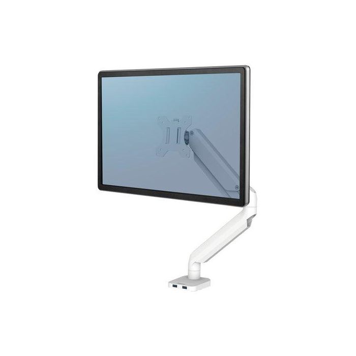 Fellowes 8056201 Soporte de Mesa para Monitor Giratorio Inclinable Ajuste a Gas con USB hasta 8kg hasta 32" Blanco