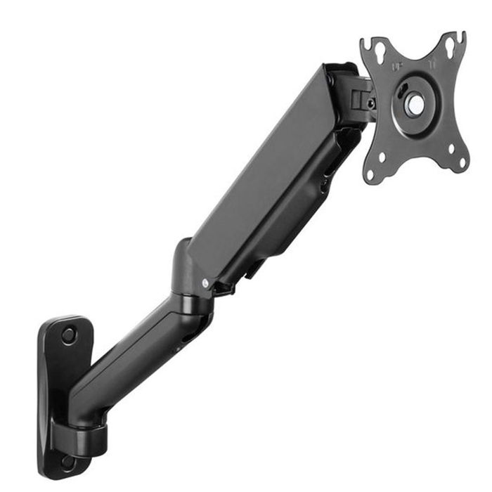 Equip Soporte de pared VESA 100x100 para monitor 17 a 32 pulgadas, brazo de resorte de gas, capacidad 9 kg, rotación 360°, inclinación ajustable, gestión de cables, color negro
