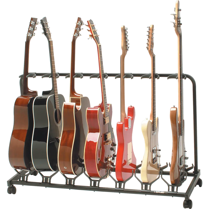 QUIKLOK Soporte Guitarra 7 Unidades con Ruedas de Acero Negro para Suelo