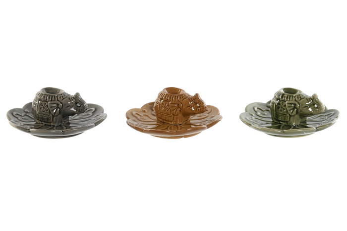 DKD Home Decor Soporte Incienso 11 x 4.5 x 11 cm (12 Unidades) Gres Verde Mostaza Gris Elefante