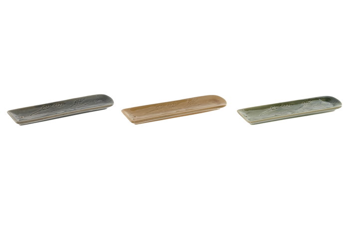 DKD Home Decor Soporte Incienso Verde Mostaza Gres 5.8 x 21.8 x 1.5 cm (3 Unidades)
