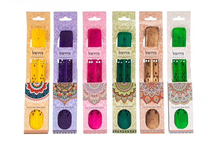 DKD Home Decor Soporte Incienso Indio Mandala Color Madera Multicolor 25 x 1 x 4 cm (12 Unidades)