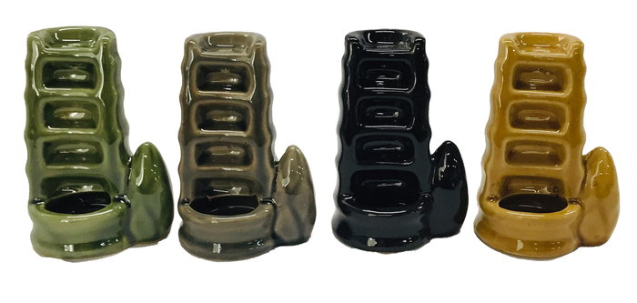 DKD Home Decor Soporte Incienso Oriental Cerámica Verde Gris Negro Mostaza 5 x 11 x 7 cm Set de 5 (8 Unidades)