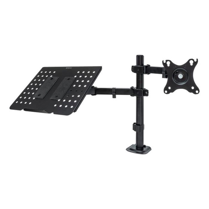 Gracias a su estructura de acero resistente y a su sistema de ajuste manual, el UK710202 permite una configuraci�n completamente personalizada para mejorar la postura y reducir la fatiga visual y cervical. El brazo para monitor y la base para port�til trabajan en conjunto para ofrecer una zona de trabajo m�s ordenada, c�moda y eficiente.