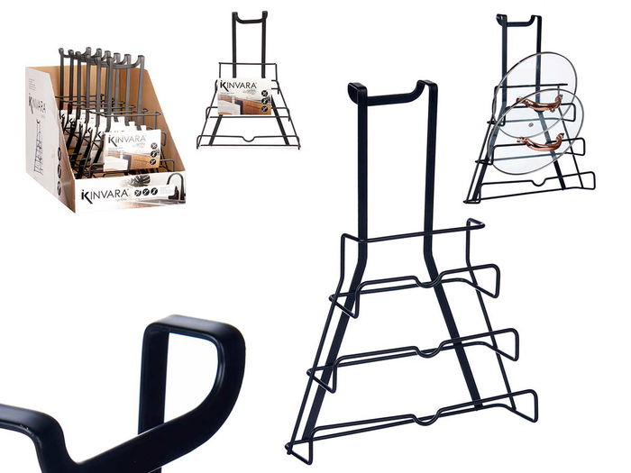 SOPORTE NEGRO METAL PERCHA SOPORTE TAPAS SARTEN
